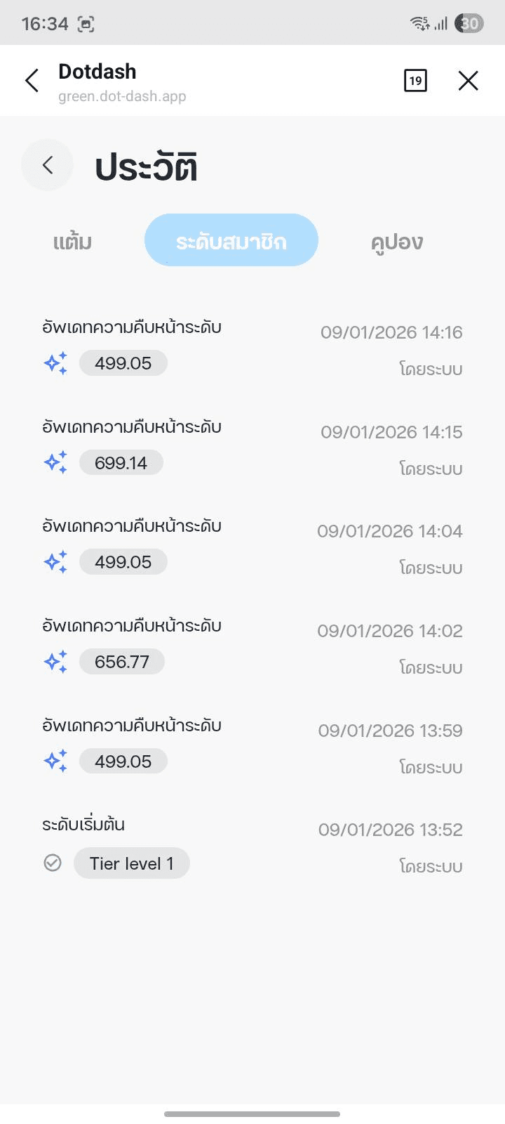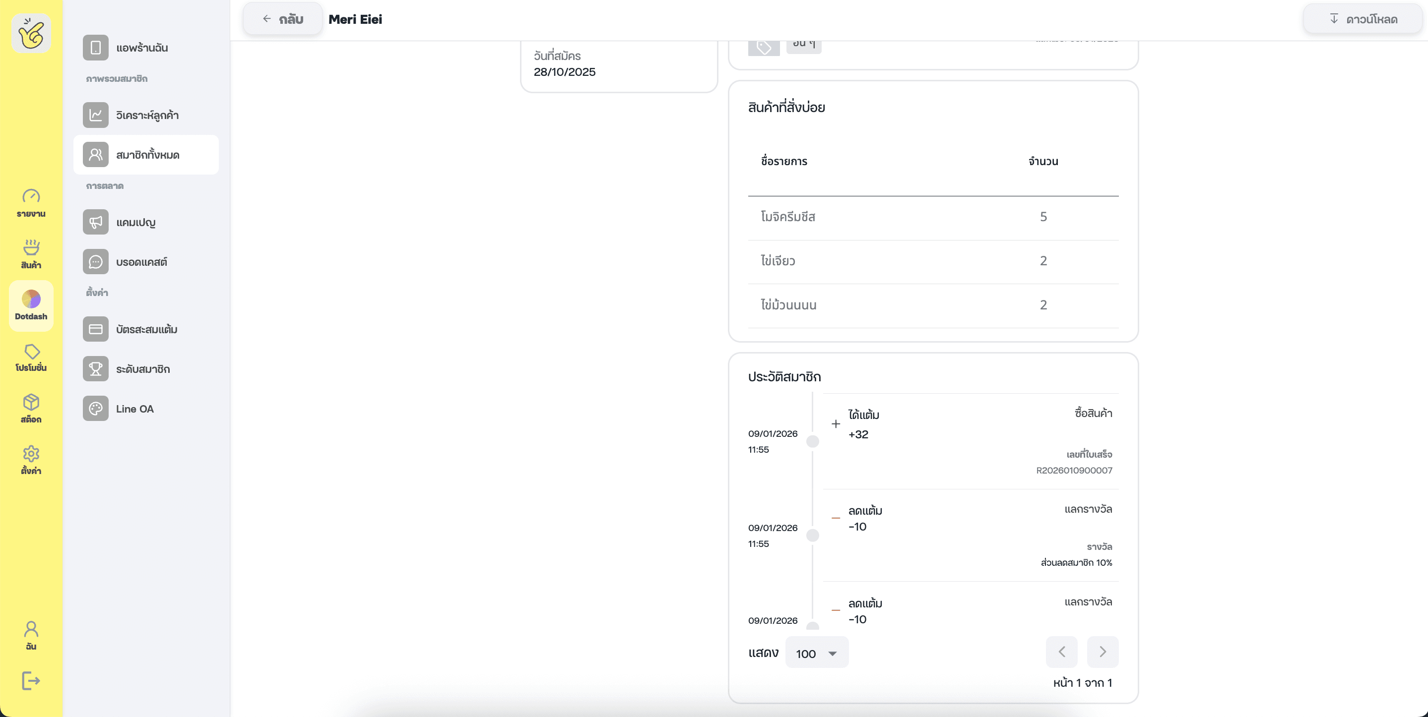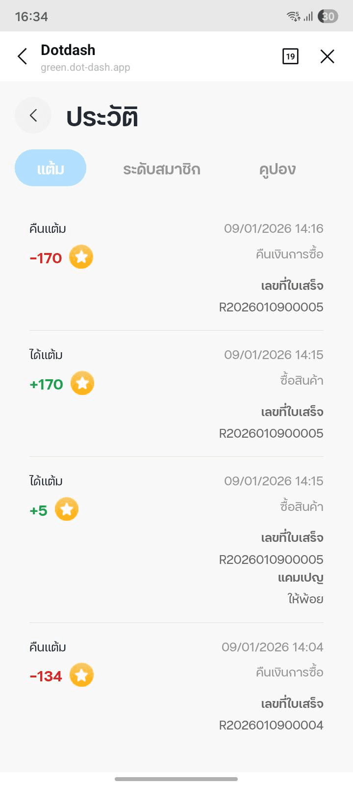 ประวัติสมาชิกเพิ่มเติม: เลขที่ใบเสร็จที่ได้รับแต้ม