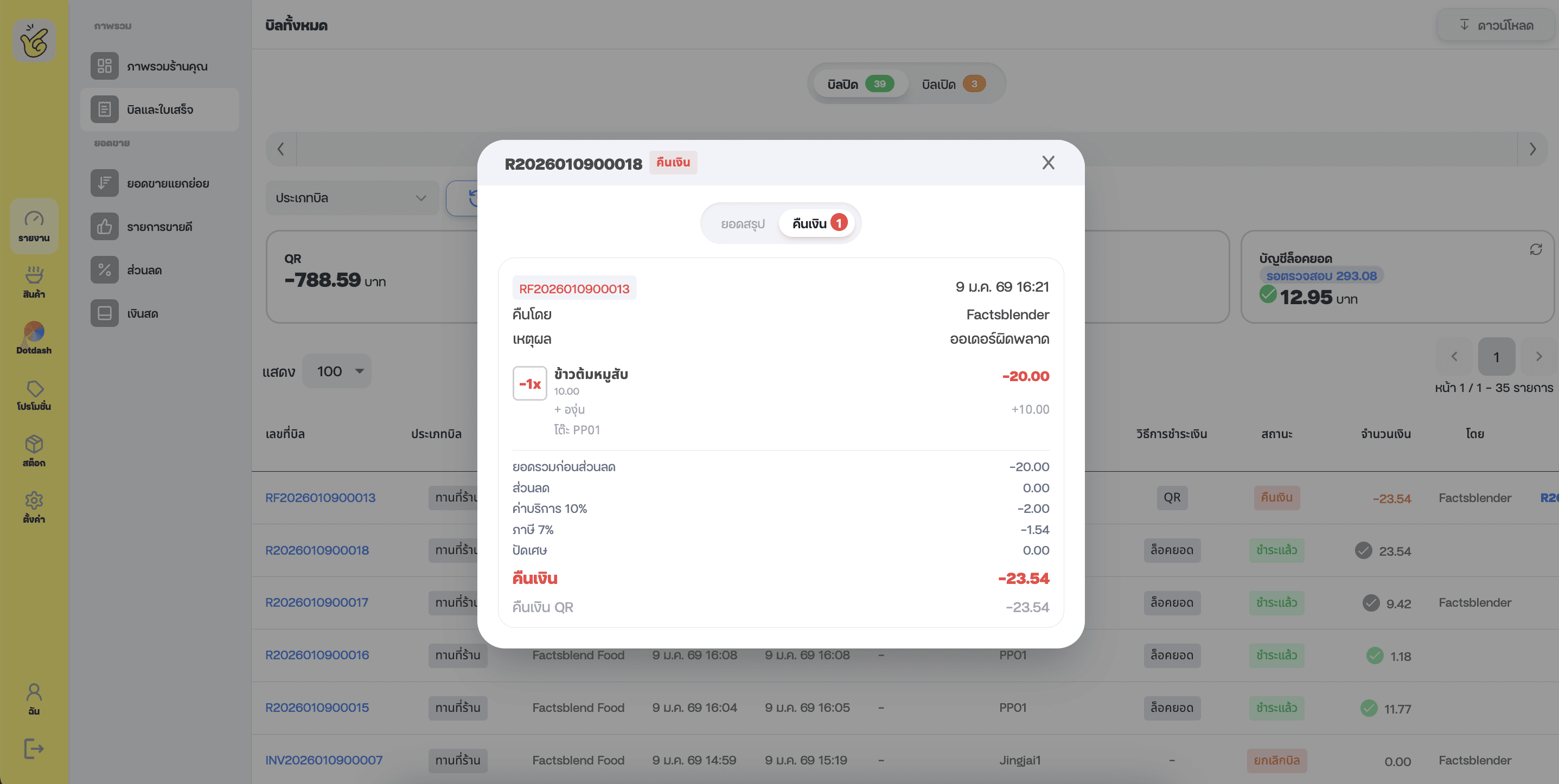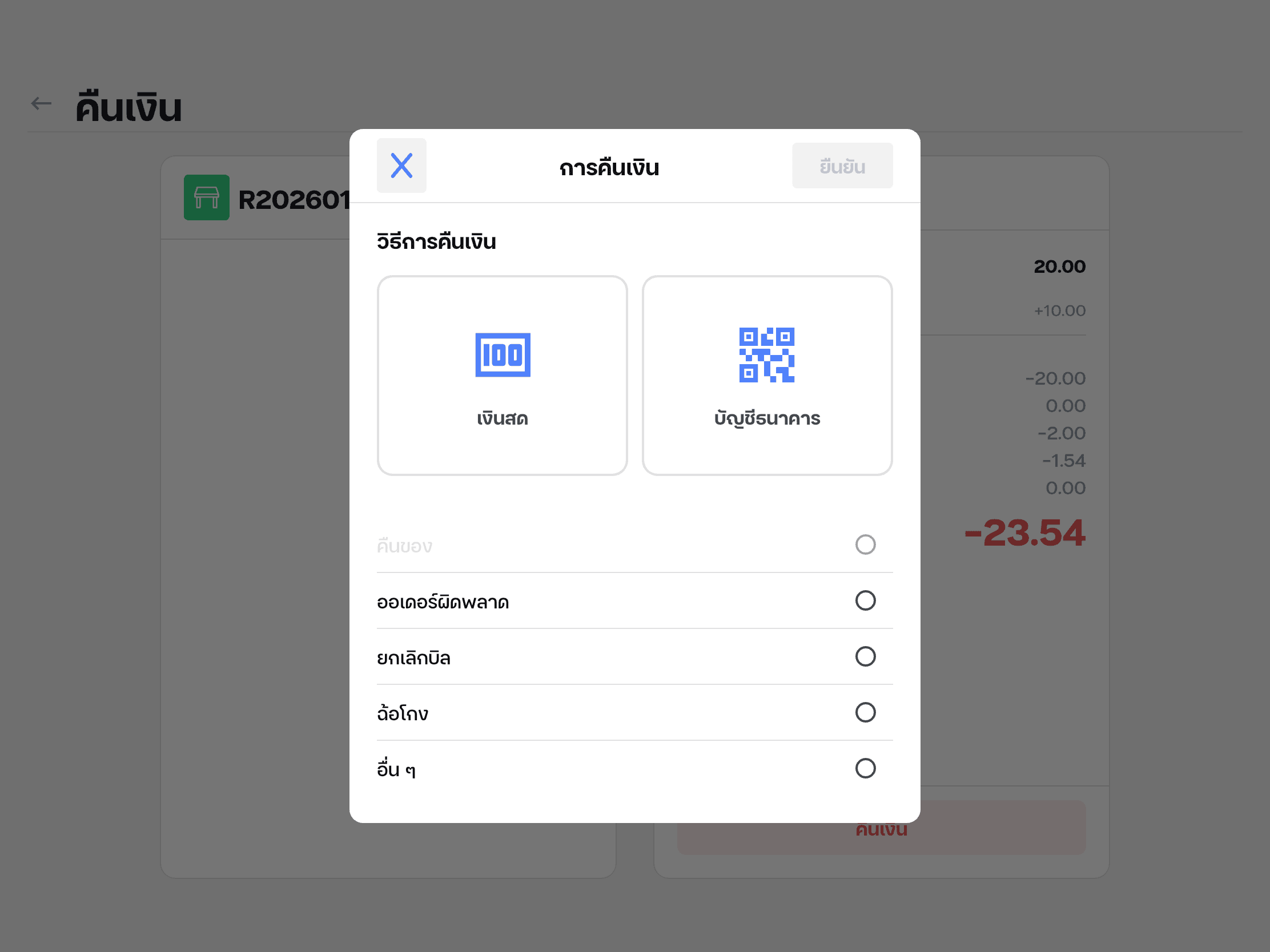 เลือกช่องทางคืนเงินได้หน้า PoS (เงินสด / QR promptpay)