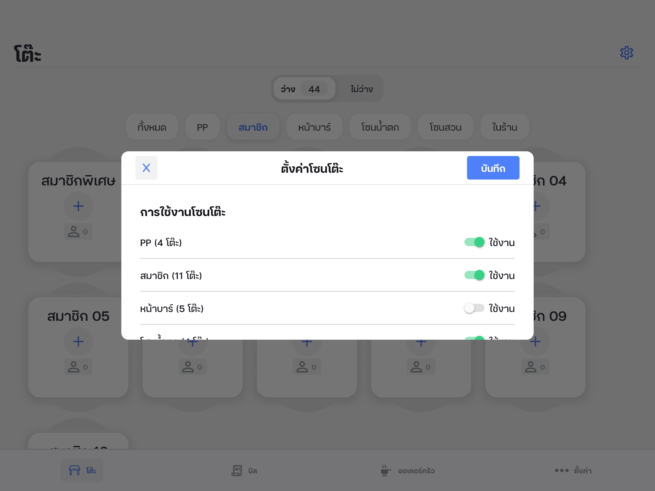 กำหนดโซนโต๊ะ, เลือกดูโซน, เปิด-ปิดโซนโต๊ะได้ตามต้องการ
